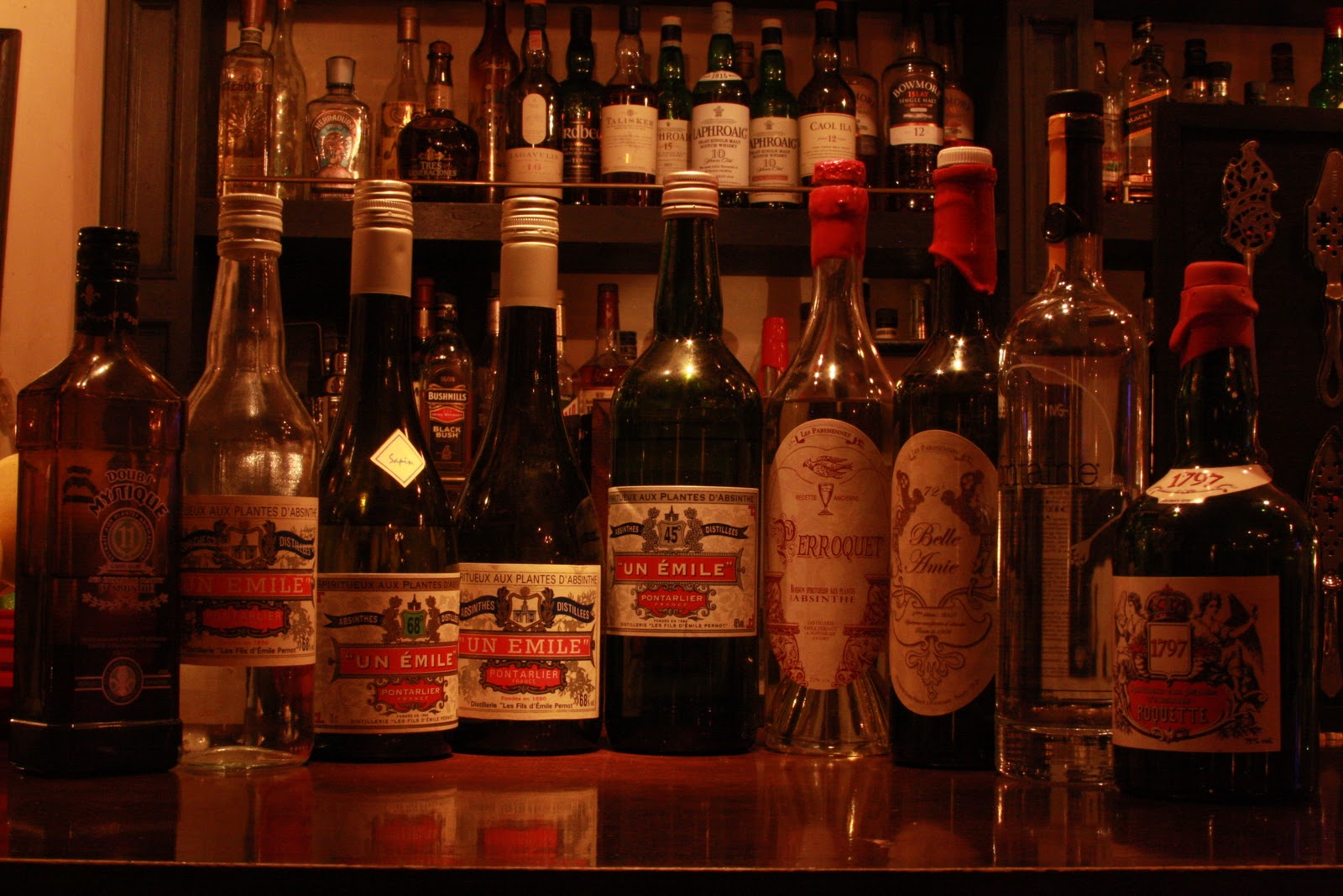 Lucky was the absinthe lovers that came on friday night . We had a little tasting of the absinthes from EMILE PERNOT , a explanation of how to drink in a proper way and how the absinthe is made , etc . It was a great experience to had seen people meeting each other , learning about many things , exchanging ideas , all through the absinthe .
